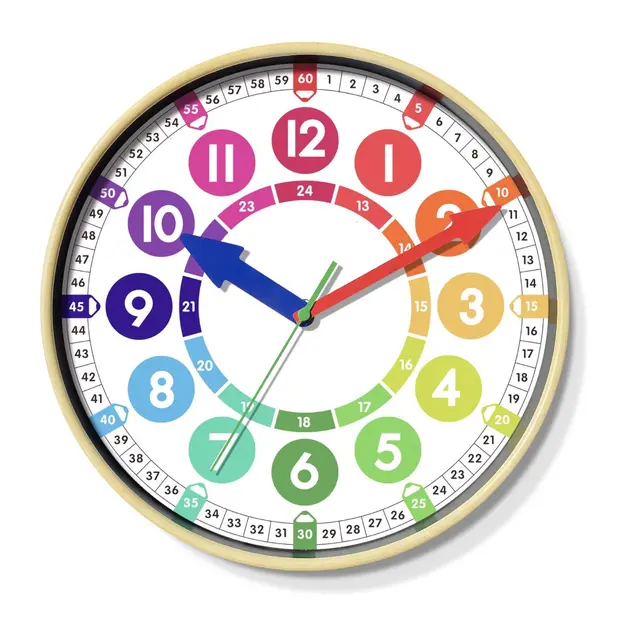 Färgglad och pedagogisk koncentrationsklocka som underlättar inlärning av klockan. 100 % tystgående. Klockan visar både minuter och sekunder på klockuret fördelade i olika färgblock. Klockan a¨r portabel och kan ba°de ha¨ngas upp pa° va¨ggen. 1 st AA-batteri kra¨vs, inga°r ej.